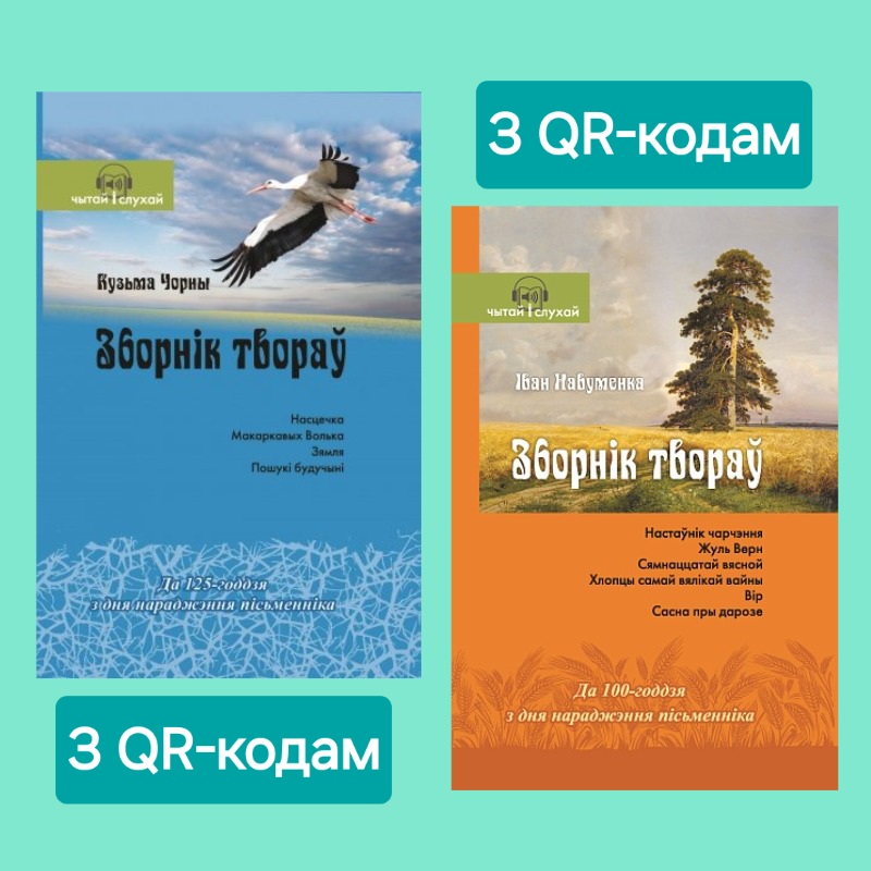 Кузьма Чорны «Зборнік твораў». Да 125-годдзя з дня нараджэння Кузьмы Чорнага (1900 – 1944). У творах «Насцечка», «Макаркавых Волька», «Зямля», «Пошукі будучыні» сцвярджаецца гуманістычная думка пра вялікую сілу чалавека, хараство простых людзей, міласэрднасць, спагаду, уздымаюцца праблемы бацькоў і дзяцей. Кожны твор змяшчае спасылкі ў выглядзе QR-кодаў на аўдыёзапісы матэрыялаў. Для школьнікаў, а таксама для ўсіх, хто цікавіцца беларускай літаратурай пачатку ХХ стагоддзя.